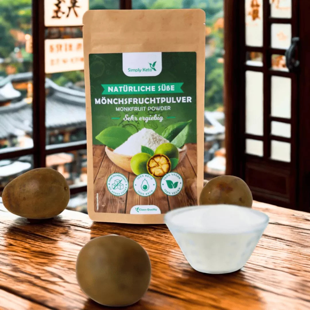 Naše sladilo iz meniškega sadeža je izdelano po skrbnem postopku, pri katerem se izvleček sadeža nežno posuši s pršilno metodo. Namesto škodljivega maltodekstrina vsebuje odporni dekstrin, ki ne vpliva na krvni sladkor in je popolnoma primerno za KETO prehrano.